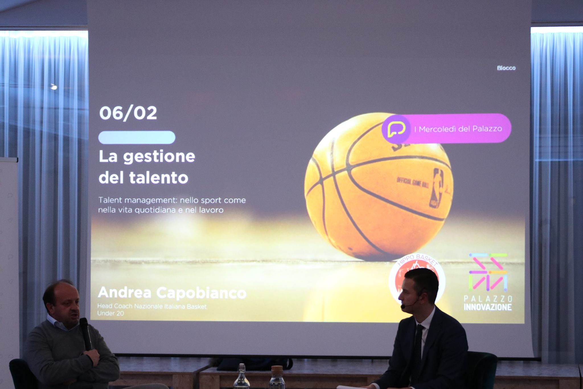 Questa frase ha rappresentato il punto di partenza dell’incontro dibattito organizzato da Palazzo Innovazione ed Hippo Basket Salerno con coach Andrea Capobianco. Il capo allenatore della nazionale italiana Under 20 è stato il protagonista del primo appuntamento del 2019 con i “Mercoledì del Palazzo” ed ha esposto le sue tesi riguardo al tema della serata: “La gestione del talento – Talent Management”. Il tecnico originario di Venafro ma salernitano d’adozione ha chiarito cosa sia per lui il talento (nello sport, come nella vita quotidiana e, quindi, nel lavoro), come debba essere riconosciuto e quindi valorizzato, ma anche di come vada allenato affinchè possa risultare efficace. Ha talento, a giudizio di coach Capobianco, chi riesce a trovare il giusto equilibrio tra capacità fisiche, doti tecnico-tattiche e forza mentale. Ma diventa campione solo chi riesce a mettere il suo talento a disposizione degli altri talenti della squadra. E questo, probabilmente, è stato il segreto della squadra italiana Under 18 che, sotto la sua guida, dopo 31 anni è riuscita nell’impresa di vincere il Torneo di Mannheim nel 2014, superando avversari sulla carta più quotati, come Turchia e Stati Uniti. Su quello storico successo Andrea Capobianco ha scritto un libro intitolato “La meravigliosa avventura – Mannheim 2014”, edito da basketcoach.net e inevitabilmente nel corso della discussione sono stati diversi i riferimenti a quella esperienza, così come alle tappe più importanti della sua carriera e ai talenti, appunto, che ha incontrato sulla sua strada.