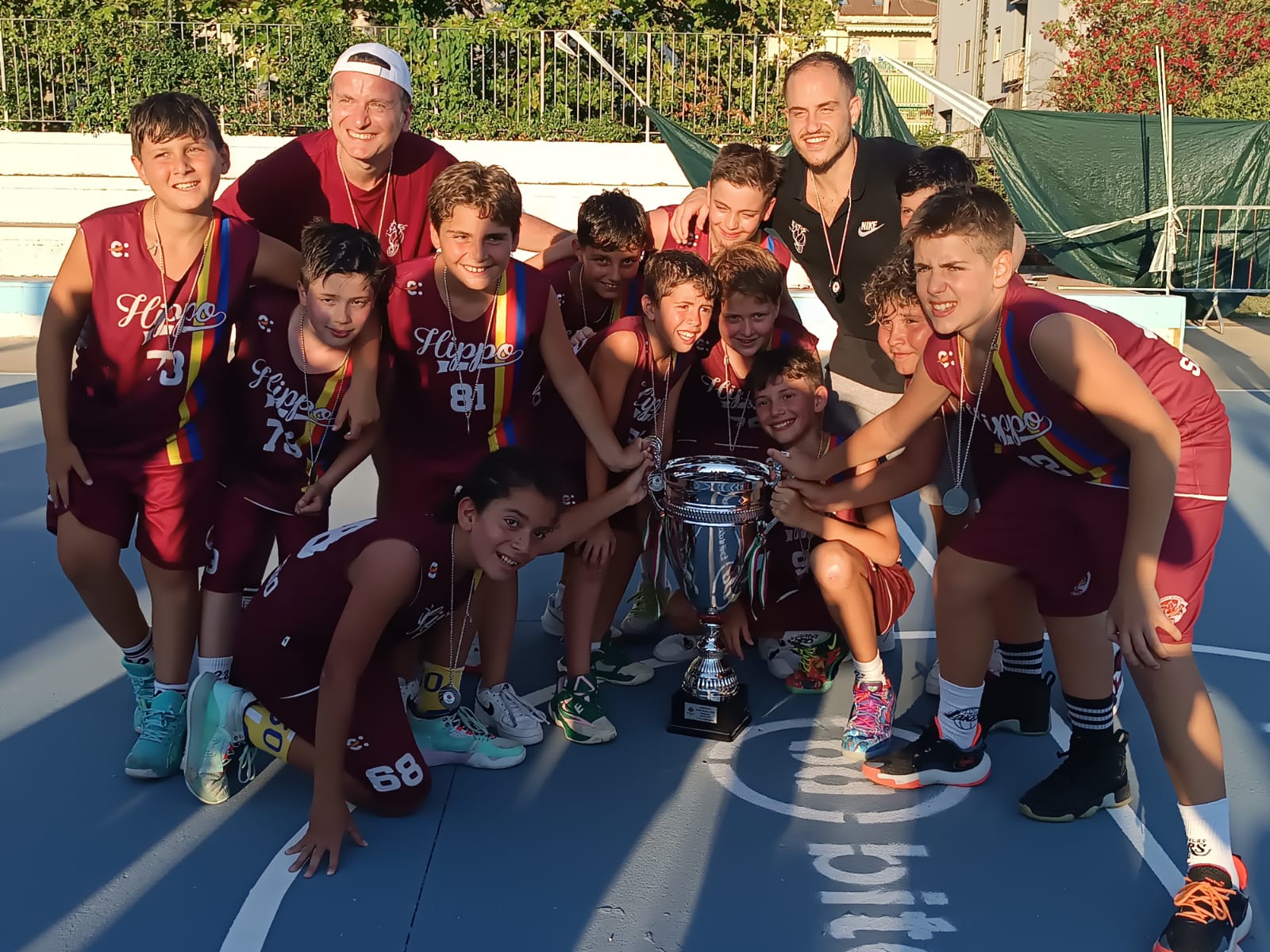 Si chiude col botto il 2024/25 del Minibasket della Hippo Basket Salerno. La squadra del presidente Giosafat Frascino si è aggiudicata il primo posto nella categoria “Aquilotti” alla Mediterraneo Cup. Nel corso della seconda edizione della manifestazione splendidamente organizzata dal Basket Agropoli su 4 campi, i granatini guidati da Michele Masturzo ed Alessandro Iacovazzo hanno letteralmente sbaragliato la concorrenza. Nel girone di qualificazione il team salernitano ha superato una dopo l’altra Pall. Picentia, Minibasket Vietri, Athletic System San Giorgio, Sorriso Azzurro Cercola e i padroni di casa dell’Olimpia Agropoli. Superata a punteggio pieno la prima fase, i salernitani nella Final Four hanno affrontato e battuto la Partenope Napoli in semifinale e, in finale, hanno avuto nuovamente ragione del San Giorgio, conquistando la Coppa.